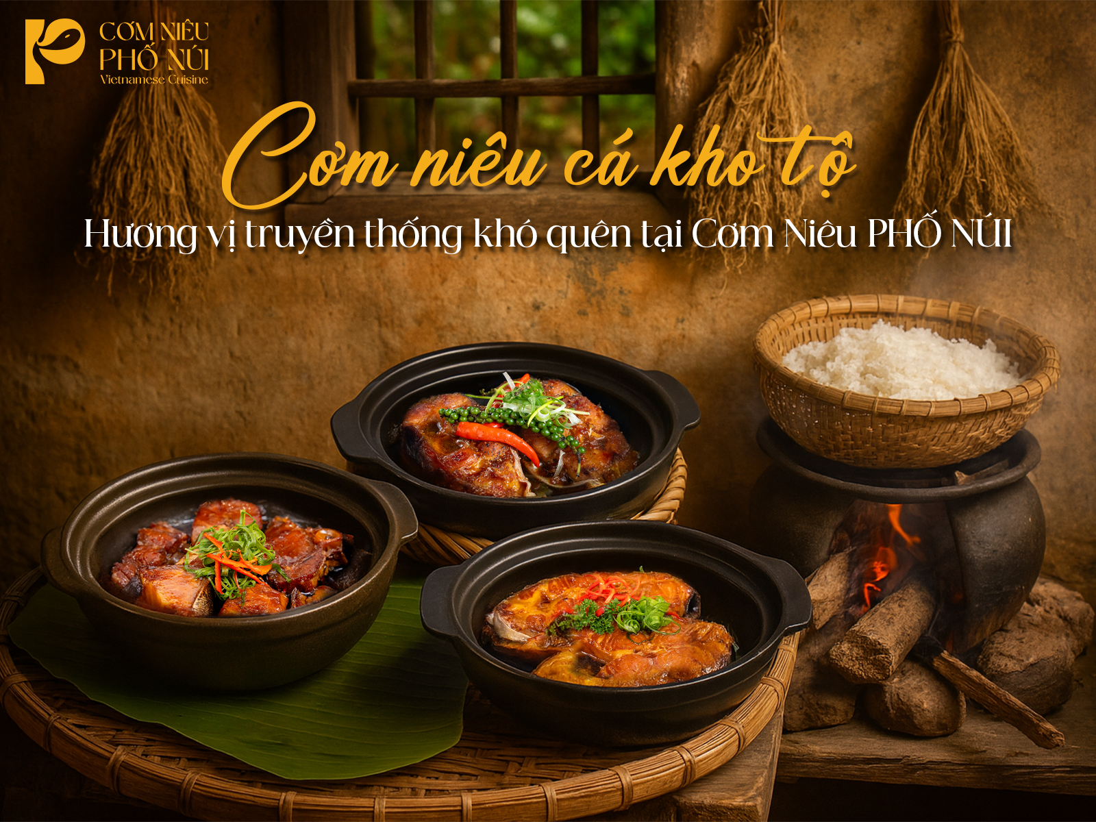 Cơm Niêu PHỐ NÚI được thiết kế như một bức tranh làng quê Việt Nam thu nhỏ, kết hợp hoàn hảo giữa phong cách kiến trúc Indochine. Mặt ngoài của công trình được lấy cảm hứng từ các cổng làng Bắc Bộ, với các hệ vòm cong bề thế, mang đến vẻ đẹp cổ kính và kiên cố. Không gian bên trong tái hiện hình ảnh căn bếp xưa, kết hợp tinh tế giữa kiến trúc truyền thống Việt Nam và các chi tiết cổ điển, tạo nên sự hòa quyện giữa quá khứ và hiện tại. Khu vực sân vườn được lấy cảm hứng từ những cánh đồng lúa xanh mướt, mang lại cảm giác yên bình và thư thái. Các yếu tố như tường vách đất, kết hợp với mái hệ vì kèo sẽ được làm bằng tre, lợp ngói bao che và những vật dụng truyền thống tạo nên một không gian ấm cúng, thân mật.